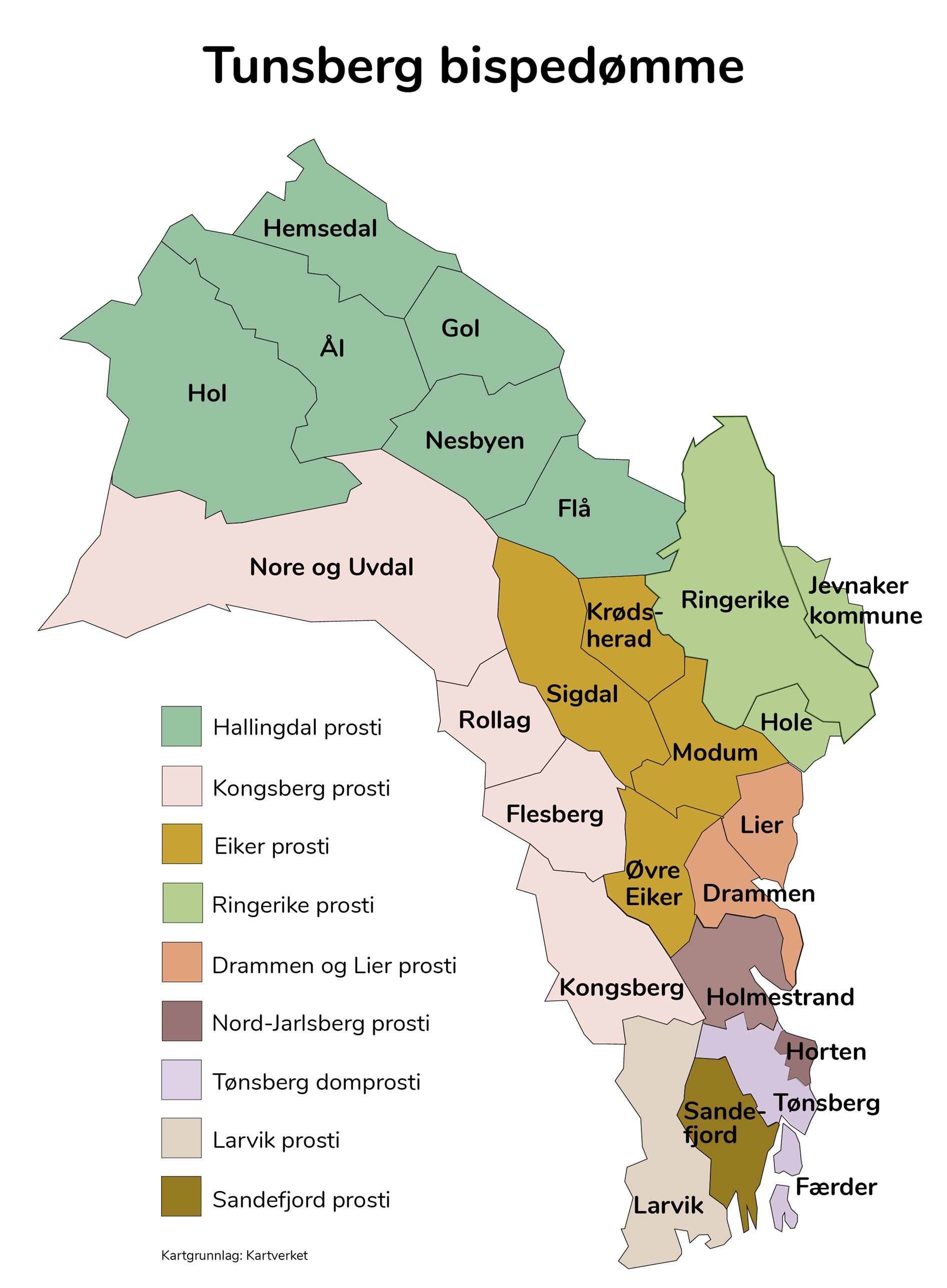 Her ser du kart over Tunsberg bispedømme, der Hallingdal vises med grønt.