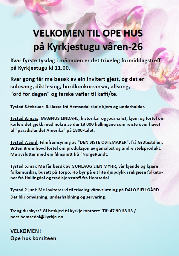 Komiteen i Ope hus er Kjellaug Solbakken, Signe Lise Jordheim og Ragnhild Jordheim Sørbø. Ta gjerne kontakt om du har idear eller innspel.